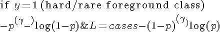 Focal loss is defined as :